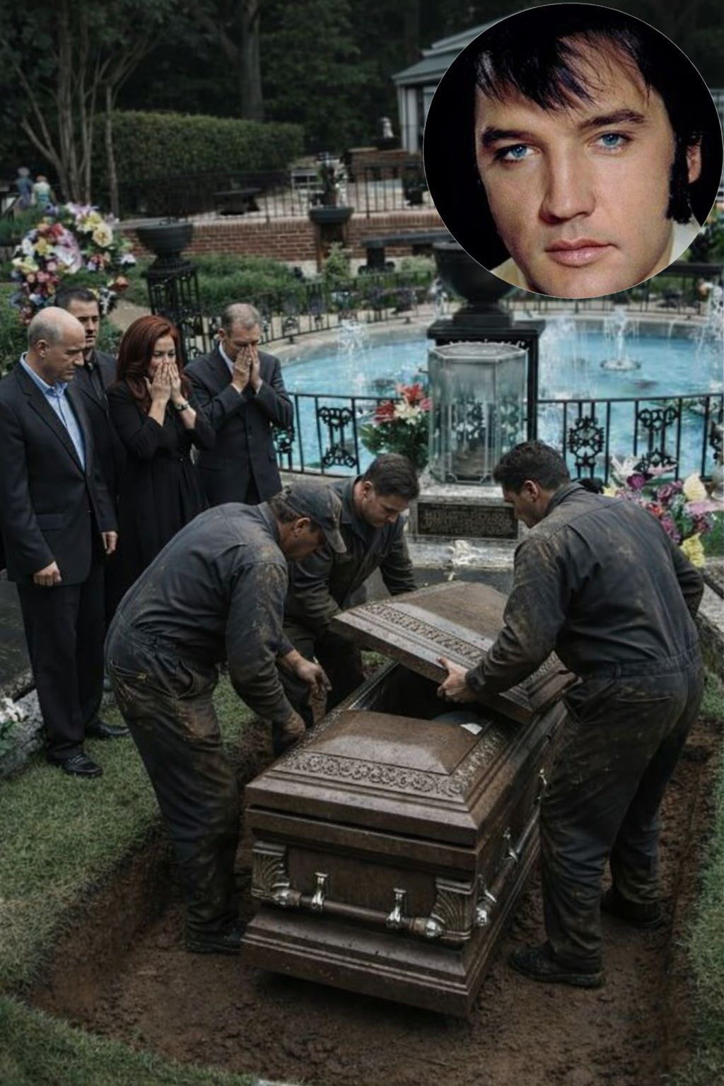 JUST IN — MEMPHIS, TENNESSEE — For nearly five decades, the passing of Elvis Presley has been framed as a settled chapter in American cultural history. Dates, causes, and conclusions were recorded, archived, and repeated until they hardened into accepted fact. Yet a resurfacing report tied to a little-known internal inspection has reopened a door many believed was permanently sealed. According to sources now circulating widely, Elvis Presley’s casket was opened after his burial — and what was observed inside did not sit comfortably with the official account of his death.